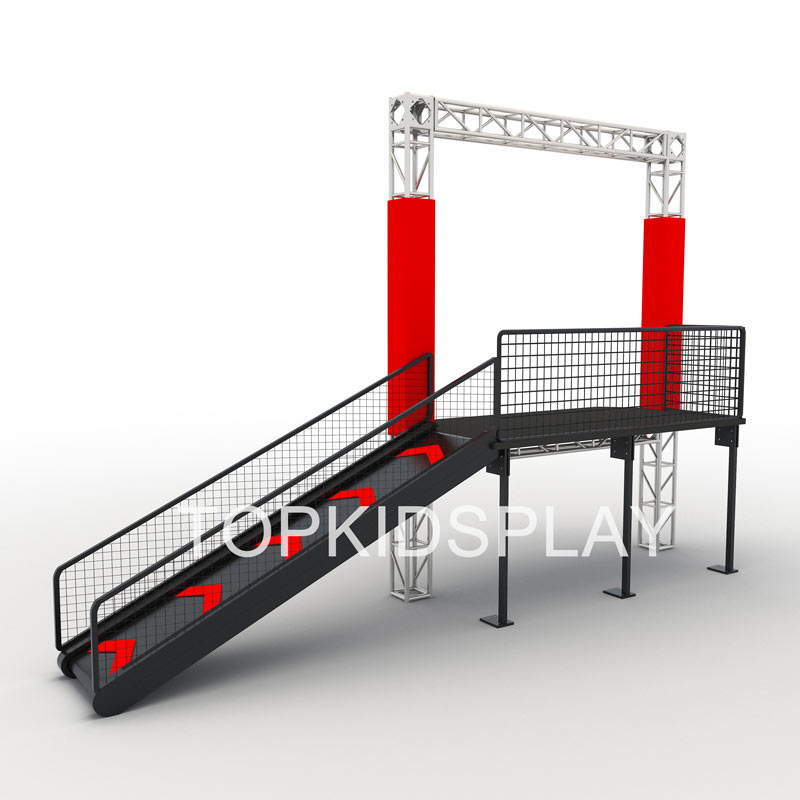 Participants can test their balance and endurance running up the incline treadmill. The speed can be adjusted from easy to extreme. This element require lower body strength.